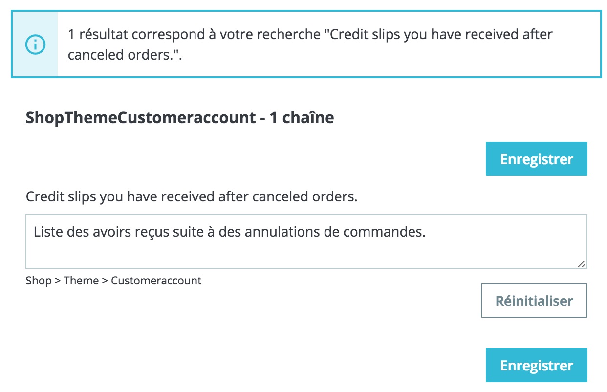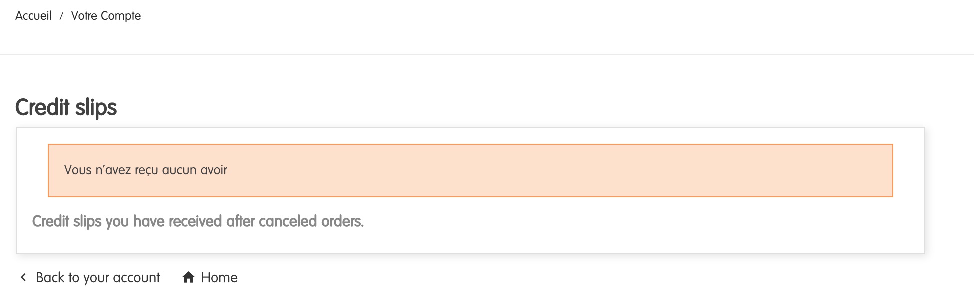 Voir donc capture_2 : sur mon site il y a la phrase non traduite "Credit slips you have received after canceled orders.".